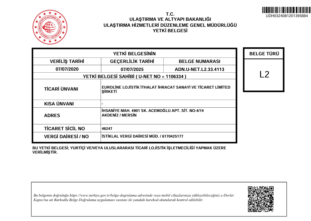 Euroline Lojistik olarak, lojistik sektöründe yenilikçi, güvenilir ve çözüm odaklı hizmet anlayışımızla yola çıktık. Kurulduğumuz günden bu yana, müşteri memnuniyetini merkezimize alarak, ulusal ve uluslararası taşımacılıkta güçlü bir iş ortağı olmayı hedefliyoruz.